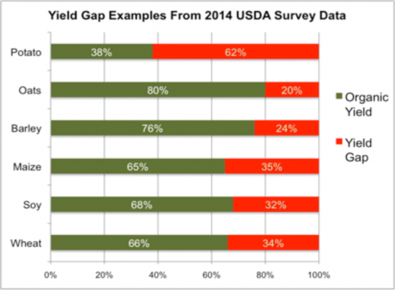 Next: The GND wants to support “family farming.” Organic farmers cheer! The problem is, organic farming or “family farming” uses more land to produce less output. Seriously, what is known as the “yield gap” (the difference between a crop’s potential and what is realized) is significantly higher with organic farming. This is counterproductive. The GND talks about the consequences of climate change, and food shortages certainly rank among those consequences. Organic farming, at its inception, absolutely had a leg up on conventional farming in achieving soil health, but now, industrial farming has found more cost-efficient and carbon-neutral means to achieve the same thing.